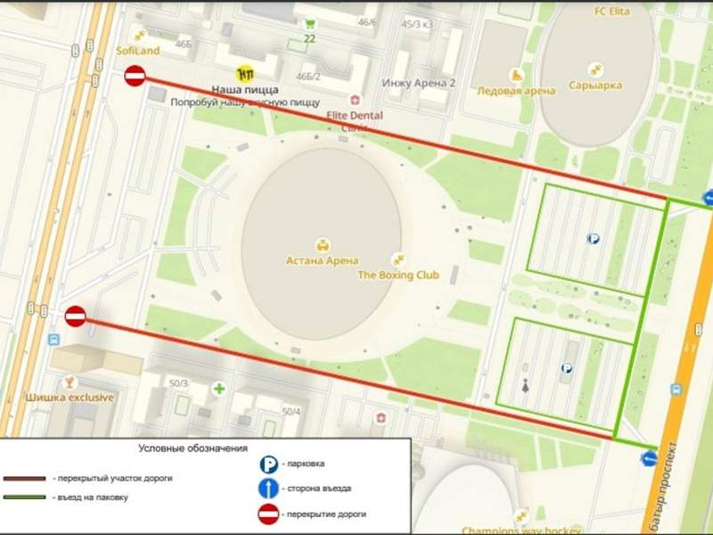 Для зрителей футбольного матча – движение будет осуществляться только через проспект Қабанбай батыра.