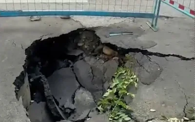 Асфальт провалился под спецтехникой в Алматы
