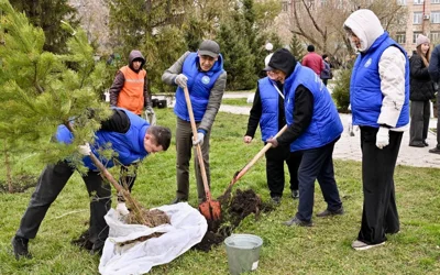 Одной из главных городских точек стал сквер имени Жумабаева: здесь высадили 100 саженцев при участии акима области Гауеза Нурмухамбетова, общественников, студентов и школьников.