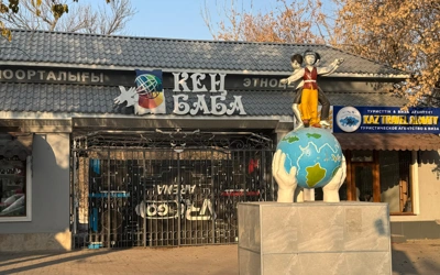 Со стороны проспекта Тауке хана на пересечении с улицей Казыбек би вход пока остается закрытым. Вывеска Kenbaba и узнаваемая скульптура девочки, моющей ноги у водоколонки, сохранились.