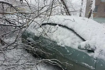 Деревья упали на автомобили из-за обильных осадков в Алматы