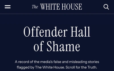 На сайте Белого дома появился раздел с «разоблачением предвзятой и вводящей в заблуждение» информации. Там есть такие рубрики, как «медиа-преступник недели», «доска позора», «таблица лидеров», «рецидивисты».