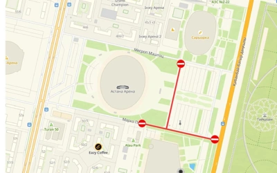 В целях обеспечения безопасности и комфорта посетителей на время проведения мероприятий 21–22 марта будет временно ограничено движение транспорта в районе стадиона «Астана Арена». Ограничения затронут улицу со стороны Ледового дворца «Алау», а также улицу вдоль восточной стороны стадиона.