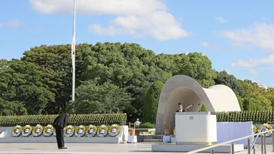 В 08:15 утра по местному времени, когда американский самолет B-29 сбросил бомбу на город, была объявлена минута молчания и прозвучал колокол мира.