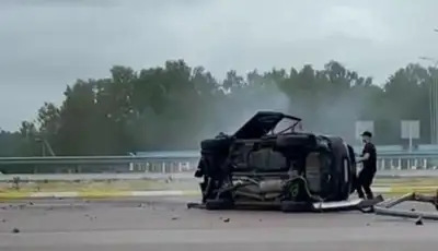 Из-за лопнувшего колеса автомобиль перевернулся на трассе в Акмолинской области