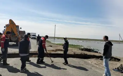 — Вокруг газоснабжающего трубопровода села Талдыколь просочилась вода, из-за чего обрушились грунт и трасса. Пострадавших нет. Фактов повреждения газопровода, газораспределения не зафиксировано. Специалисты управления пассажирского транспорта и автомобильных дорог Атырауской области проводят оперативно-восстановительные работы. Задействовано четыре единицы спецтехники, 15 специалистов. Дорога будет полностью восстановлена сегодня до вечера, — сказал заместитель акима города Атырау Нуржан Ермуханов.