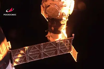 Космонавт сопроводил публикацию видеозаписью разворота МКС и отстыковки приборно-агрегатного отсека корабля.
