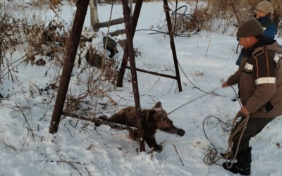 — Я увидел медвежонка прямо возле воды. Позвал соседа Ерлана, и мы смогли аккуратно набросить на него веревку. Он агрессивный, кидается, кусается. К столбу за ногу привязали, в сарай не занесешь. Дали кушать. Суп не ел, мясо немного попробовал. Главное — чтобы его скорее забрали специалисты, — делится Жанарбек Нубаев.
