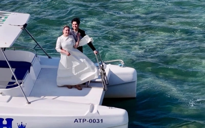 По пути молодожёны сняли несколько видеороликов в стиле love story на фоне Каспийского моря, запечатлев атмосферу важного для страны дня. В объектив камеры попали живописные морские пейзажи, моменты прогулки по воде и прибытие к берегу. Таким образом они совместили один из самых важных дней в личной жизни с участием в значимом общественно-политическом событии.