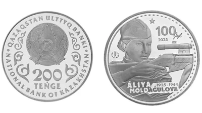 Национальный банк Казахстана выпускает в обращение коллекционные монеты ÁLIYA MOLDAǴULOVA. 100 JYL из серии «Выдающиеся события и люди», передает агентство Kazinform