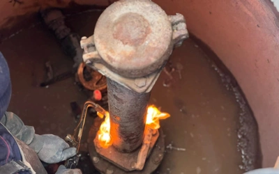 В настоящее время специалисты продолжают работы, направленные на подъем трубопровода от участка, подключенного к контрольному колодцу на вводе в вышеуказанные жилые дома.
