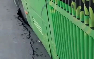 В Ауэзовском районе Алматы на улице Яссауи просел новый асфальт — глубокая трещина на дороге заблокировала движение двух автобусов, передает корреспондент агентства Kazinform.