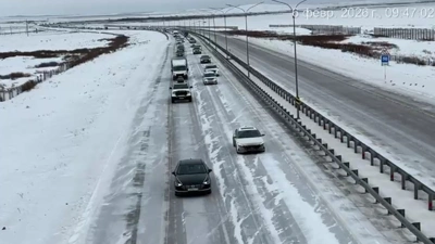 После временных ограничений, введенных из-за гололеда и дождя, проезд открыли в организованном формате — колонну из сотен машин провели под полицейским контролем, передает корреспондент агентства Kazinform.