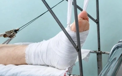 Пациента осмотрели травматолог, хирург и терапевт. Несмотря на то, что внутренние органы не пострадали, было установлено, что у него закрытый перелом обеих пяточных костей. Мужчине была проведена операция.