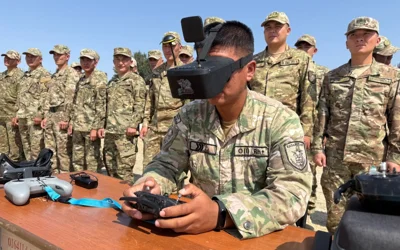 Эта футуристичная битва состоялась в рамках соревнований войск Регионального командования «Юг» в Таразе. Военнослужащие выполняли маневры на высокой скорости, проводили дроны через узкие проемы и одновременно передавали четкое изображение на командный пункт. Одним из ключевых испытаний стало метание гранат – необходимо было с высоты более 10 метров попасть в цель размером с люк боевой машины.