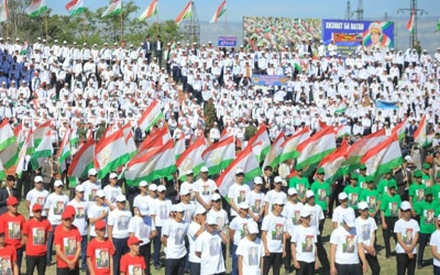 В областном центре ГБАО городе Хорог перед началом торжественного мероприятия состоялось массовое шествие, в котором приняли участие сотрудники воинских частей, офицеры, солдаты и призывники.