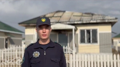 Не теряя ни секунды, старший лейтенант Темирлан Кажиханулы поднялся на крышу дома, где в густом дыму заметил человека. Подняв пострадавшего на руки, полицейский спрыгнул с крыши горящего здания.