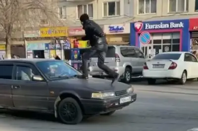 Пробежавшего по машине на пешеходном переходе пранкера задержали в Алматинской области