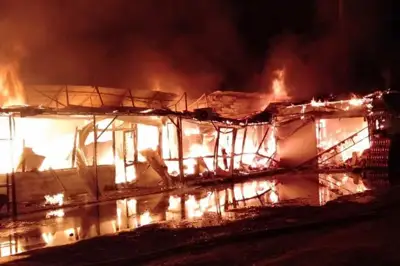 В 04:40 часов вдоль поливного канала «Рамадан» в Сарыагаше загорелись девять продуктовых бутиков на общей площади 250 кв.м.