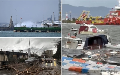 В Бююкчекмедже затопило подземный проезд на трассе D-100 морской водой, движение транспорта было затруднено. Также сообщается о поваленных деревьях, поврежденных машинах и линий электропередач.