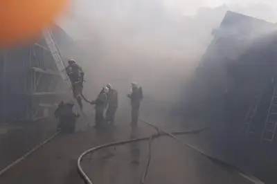 «В Турксибском районе, улица Бекмаханова 96 б предварительно горит склад. На месте предварительно работает 15 единиц техники и 60 человек, а также автопоезд с объемом 30 тонн с СПЧ-2. В одном из складов горит макулатура. Создано три боевых участка, поданы стволы на тушение и защиту соседних объектов, автоцистерны установлены на гидранты», - сообщили в ДЧС Алматы.