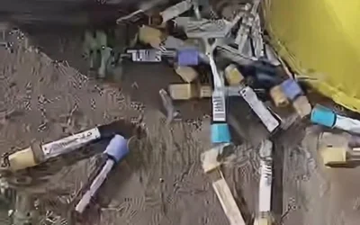 В сети появились кадры любительского видео с отходами, состоящими из использованных шприцов, систем, инструментов, передает корреспондент агентства Kazinform.