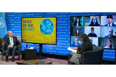 Во время выступления в Колумбийском университете, Генеральный секретарь ООН Антониу Гутерриш призвал мировых лидеров сделать 2021 год временем, когда человечество завершит свою «войну с природой» и возьмет на себя обязательство построить будущее, свободное от нагревающего планету углерода. Комментируя новые отчеты, посвященные рекордным погодным условиям 2020 года и растущему объему добычи ископаемого топлива, которое вызывает глобальное потепление, Антониу Гутерриш настоятельно призвал обуздать изменение климата. Упомянув тот факт, что страны мира тратят триллионы долларов на восстановление после спада экономики, вызванного пандемией, он подчеркнул необходимость делать это с упором на экологически чистую энергию. Особое внимание Генеральный секретарь ООН уделил роли образовательных учреждений в решении актуальных проблем состояния Земли.