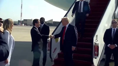 По данным израильского 12-го телеканала, Дональд Трамп распорядился, чтобы самолет Air Force One пролетел на малой высоте над «площадью Заложников», а также над израильтянами, отдыхающими на пляжах, прежде чем совершить посадку в аэропорту Бен-Гурион. На пляже Тель-Авива установлен огромный баннер с приветствием президента США.