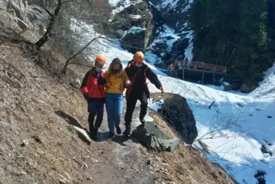 «Девушку обнаружили в ущелье Проходное на высоте 2200 метров над уровнем моря. Туристка сидела, прислонившись спиной к дереву. Спасатель-медик измерил артериальное давление пострадавшей, оказалось, что оно было значительно повышено, что, по-видимому, и обуславливало все остальные симптомы. Был поставлен предварительный диагноз – горная болезнь. После оказания первой доврачебной помощи, поддерживая под руки, спасатели РОСО сопроводили девушку вниз, где ее ожидали сотрудники Центра медицины и катастроф», - отметили в ведомстве.
