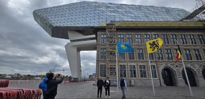В честь гостей из Казахстана представители порта Антверпен — Брюгге подняли казахстанские и бельгийские флаги перед штаб-квартирой второй по величине в Европе морской гавани.