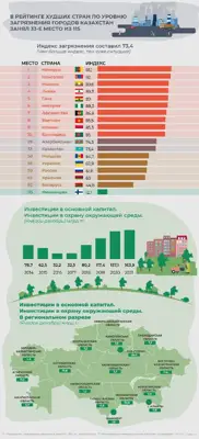 В рейтинге худших стран по уровню загрязнения городов Казахстан занял 33-е место из 115