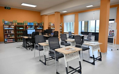Школа оснащена 17 интерактивными панелями, актовым залом на 84 места, столовой на 78 мест, библиотекой и читальным залом. Для учащихся созданы STEM-лаборатории, хореографический зал, спортивный зал площадью 673 кв. метра, а также игровые площадки. На территории школы расположены футбольное, волейбольное и хоккейное поля и беговая дорожка длиной 400 метров.