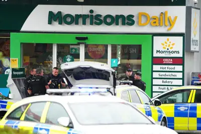Вооруженная полиция и переговорщик были вызваны на место происшествия на автозаправочной станции Esso в Хенгров-Уэй вскоре после 7:30 утра в четверг.