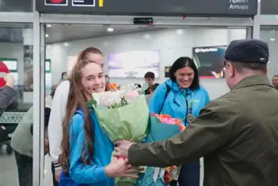 В аэропорту с цветами и плакатами девушек встречали болельщики и близкие.