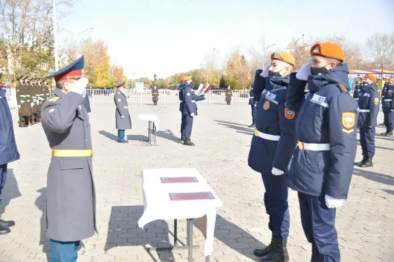 На центральной площади «Тәуелсіздік» областного центра прошла торжественная церемония приведения к Присяге курсантов 1-го курса факультета очного обучения Кокшетауского технического института Министерства по чрезвычайным ситуациям Республики Казахстан. В текущем году в состав курсантов факультета очного обучения были зачислены 189 абитуриентов, из которых сегодня присягу приняли 147 курсантов. 37 курсантов МЧС РК направлены в профильные зарубежные вузы России и Беларуси, они приняли присягу до отправки в учебные заведения.