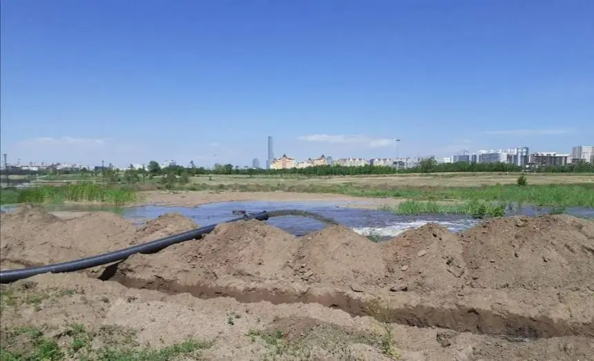 На участке, где выполняются работы, глубина реки Есиль менее одного метра. Они проводятся в природоохранных целях, для увеличения глубины реки.