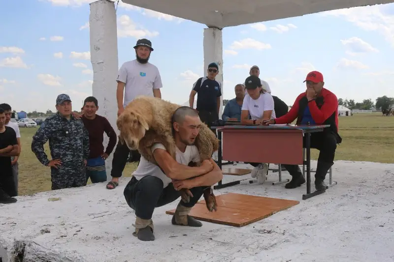 В поднятии барана лучший результат показал Адиль Серикпаев из села Сарыбел Каркаралинского района. Он за две минуты сделал 50 подходов.