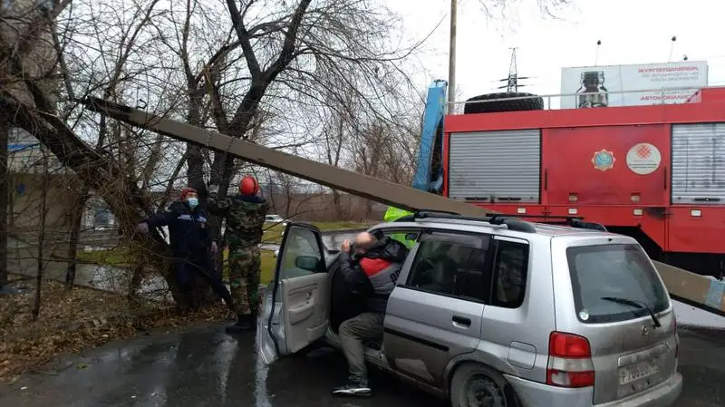 Из-за сильного ветра бетонный столб упал на автомобиль в Семее