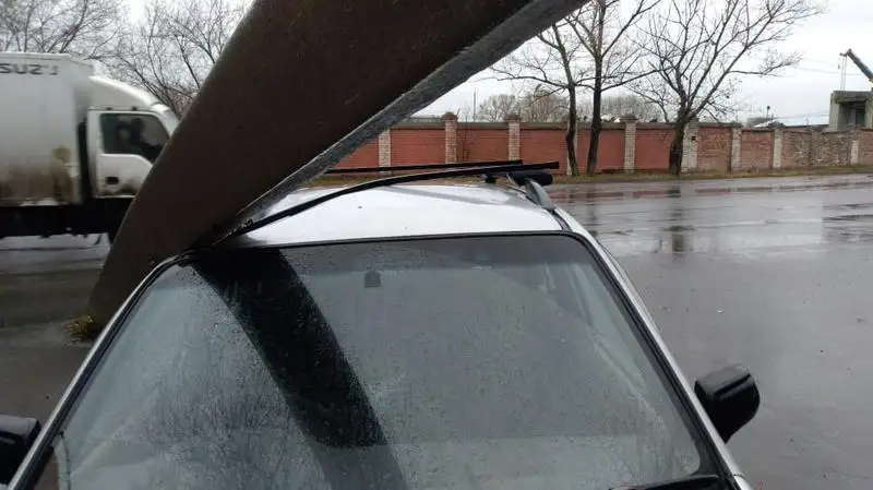 «Из-за неблагоприятных погодных условий и сильных порывов ветра на автомобиль упал столб, обломившийся у основания, электричество к столбу отсутствовало. В 10:18 на место происшествия было направлено отделение спасателей на автомобиле ОСА-20, с помощью крана – манипулятора спасатели подняли и переложили столб на землю, тем самым освободили автомобиль», - пояснили в УЧС.