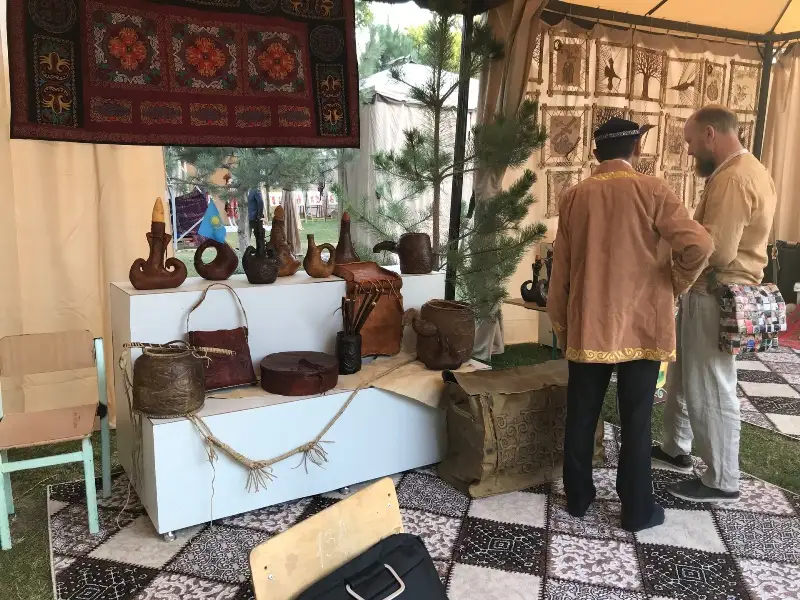 Министр культуры и спорта РК в ходе выставки осмотрела стенды казахстанских ремесленников, которые были представлены на фестивале. Отечественные умельцы привезли на выставку предметы казахского народно-прикладного искусства: различные картины, национальные инструменты, одежда и вышивки из казахских орнаментов, украшения из серебра, деревянные и кожаные посуды и предметы быта, а также многое другое.
