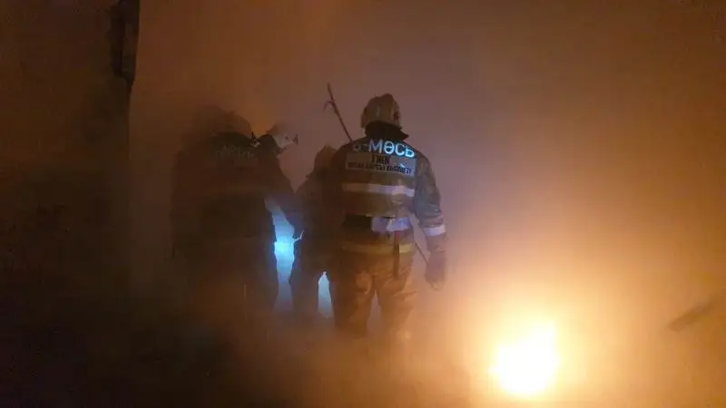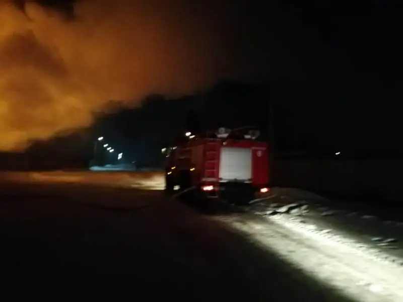 Крупный пожар в селе Косшы тушили пожарные двух регионов