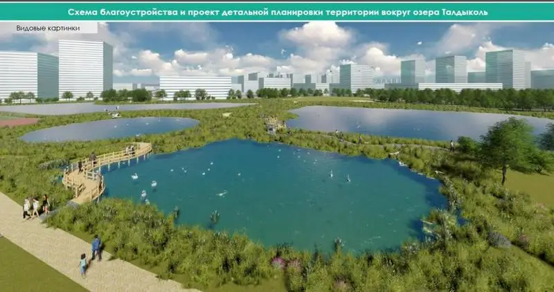 Таким образом, в целях безопасности и создания комфортного проживания для жителей близлежащих районов, малый Талдыколь будет очищен от вредных веществ. Водная гладь малого Талдыколя (ул.Сыганак с севера, продолжение улицы Е22 с юга, пр. Туран с востока, и ул. Ч. Айтматова с западной стороны), которая расстилается на 20 гектарах, будет сохранена. Также будут проведены дноуглубительные работы для того, чтобы повысить уровень воды. Таким образом, болотистое место станет очищенным водоемом и будет представлять собой парковую зону.