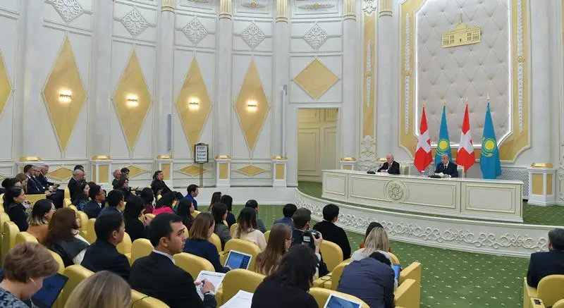 Президенты Казахстана и Швейцарии выступили на брифинге для СМИ