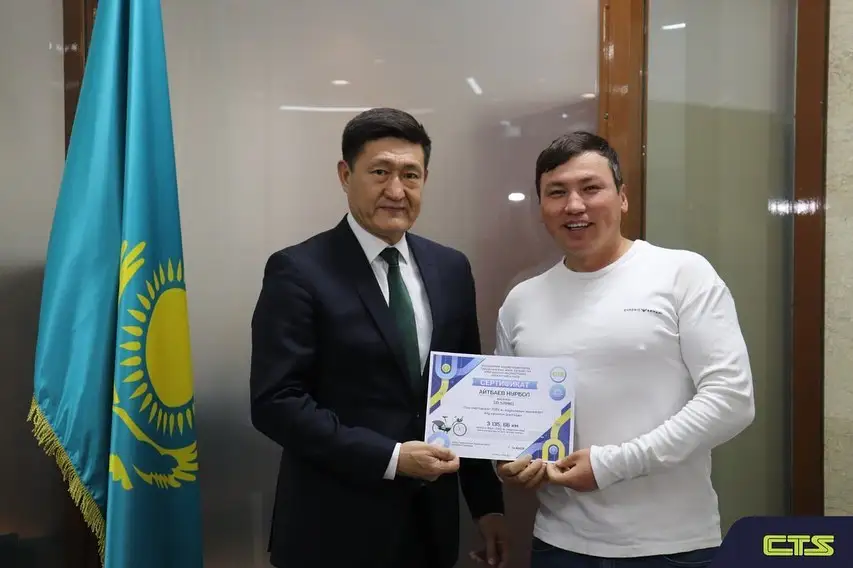 Председатель правления CTS Гани Тажиев поздравил с наступающим праздником и вручил сертификаты на сезонный абонемент на велосезон 2023 года активным пользователям, которые проехали самое большое расстояние на велосипедах «Astana bike».
