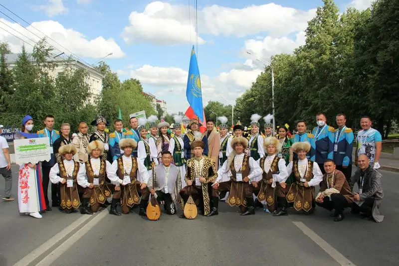 С первых же дней пребывания на башкирской земле местные жители встретили казахстанский коллектив с особой теплотой. Музыканты совершили экскурсию по городу и посетили исторические объекты Уфы, приняли участие на торжественном параде участников Фольклориады – 2021. Во время шествия казахстанского коллектива жители и гости города приветствовали их с радушными возгласами «Казахстан, братья», «Кош келдиндер!» («Добро пожаловать!»). Музыканты ансамбля в ходе парада продемонстрировали зрителям национальные танцы, спели и сыграли кюй на домбре. Кульминацией шествия стало установление рекорда России на самый массовый спиральный хоровод в национальных костюмах. Одновременно 2700 человек из 57 стран приняли участие на данном хороводе. Кроме того, второй рекорд был поставлен с одновременным участием представителей 71 национальности в хороводе.