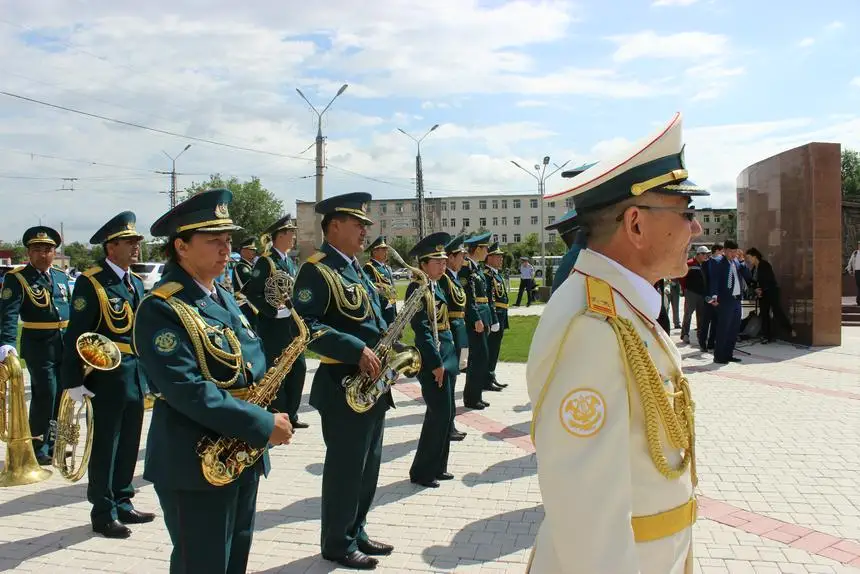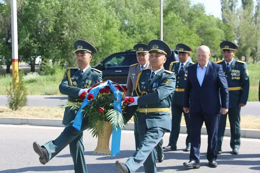 В Таразе военнослужащие РгК «Юг» возложили цветы к мемориальной доске первого министра обороны Казахстана генерала армии Сагадата Нурмагамбетова.
