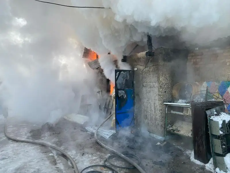 Пожар был ликвидирован на площади 32 кв.метра. В ликвидации были задействованы 5 человек личного состава и 2 единицы техники. Предварительная причина пожара - неосторожное обращение с агрегатом повышенной опасности.