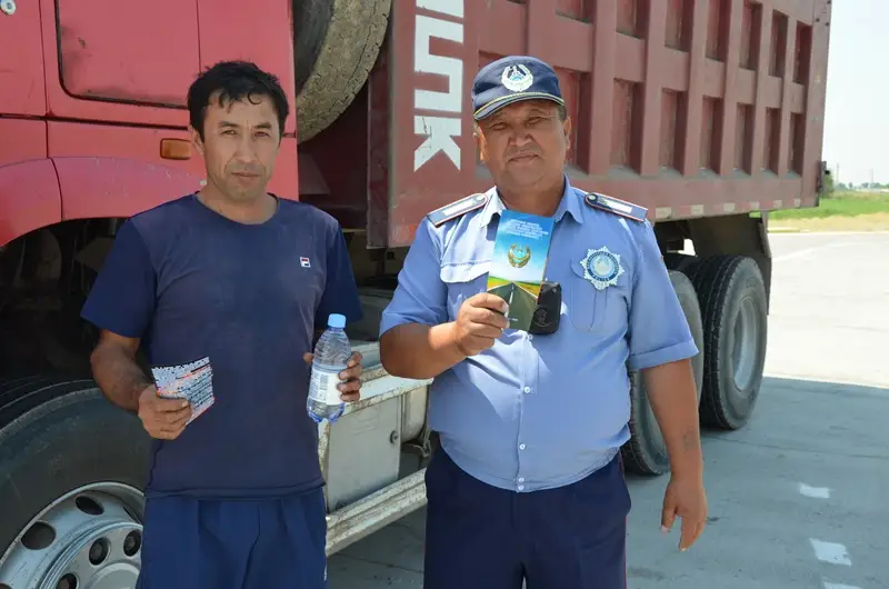 Воду и брошюры с правилами дорожного движения раздали туркестанским водителям